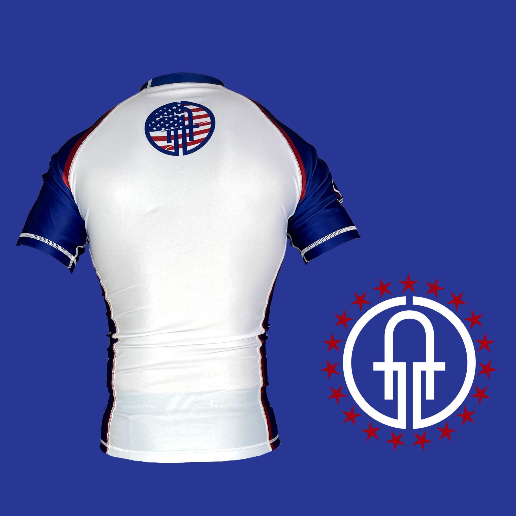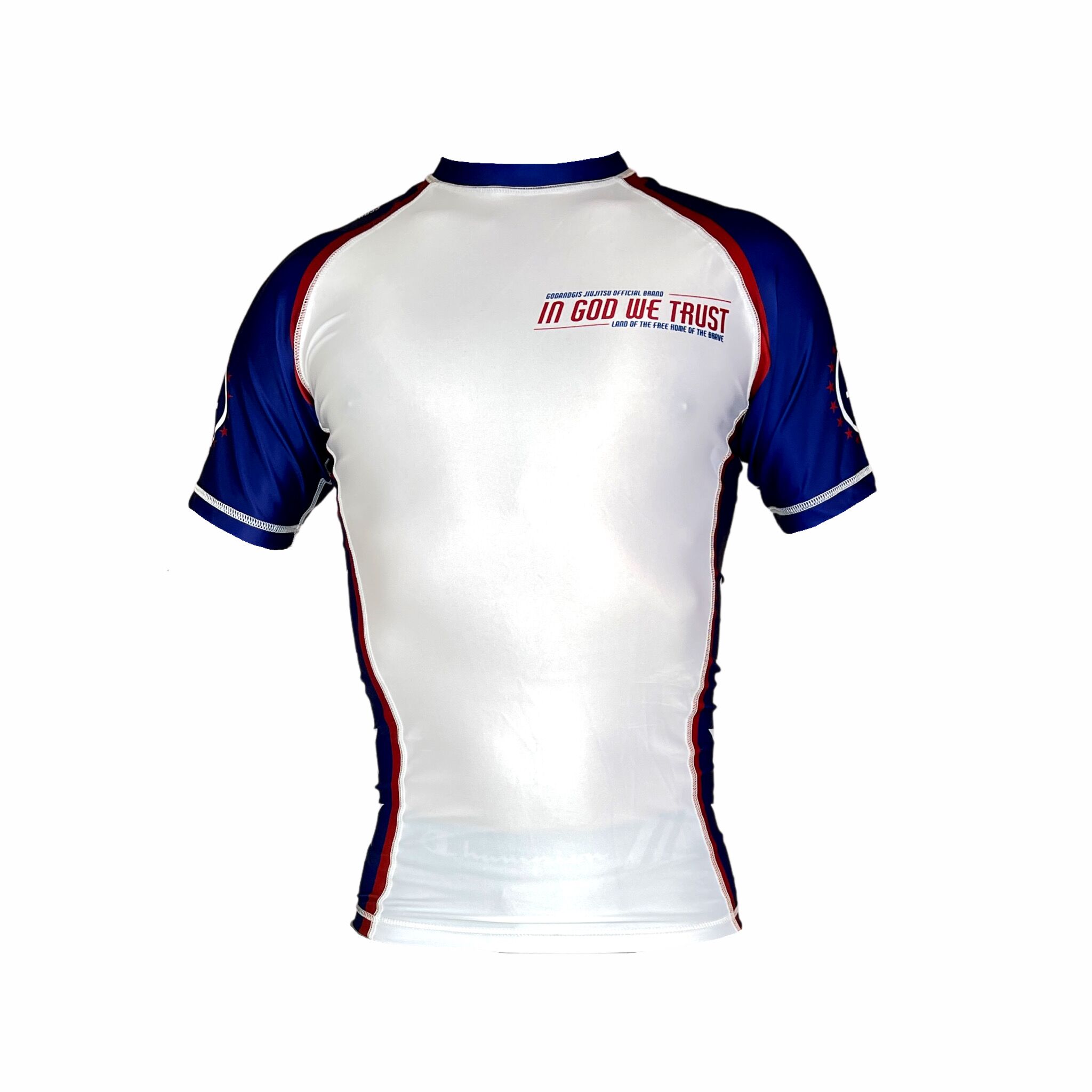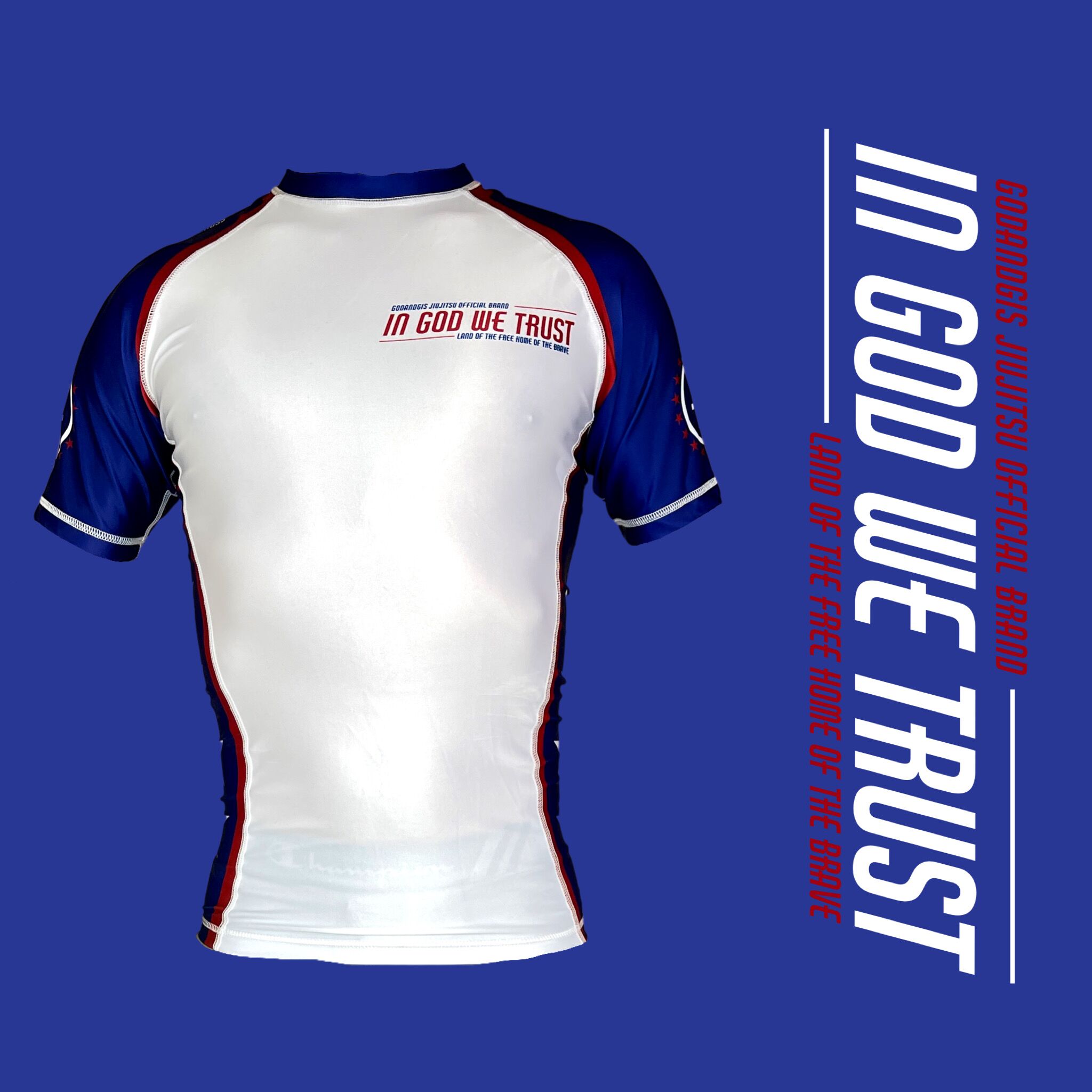 Show your pride and dedication with “The Patriot” Jiujitsu Rashguard. Designed to embody the spirit of freedom and faith, this rashguard is perfect for athletes who want to train hard while making a bold statement.