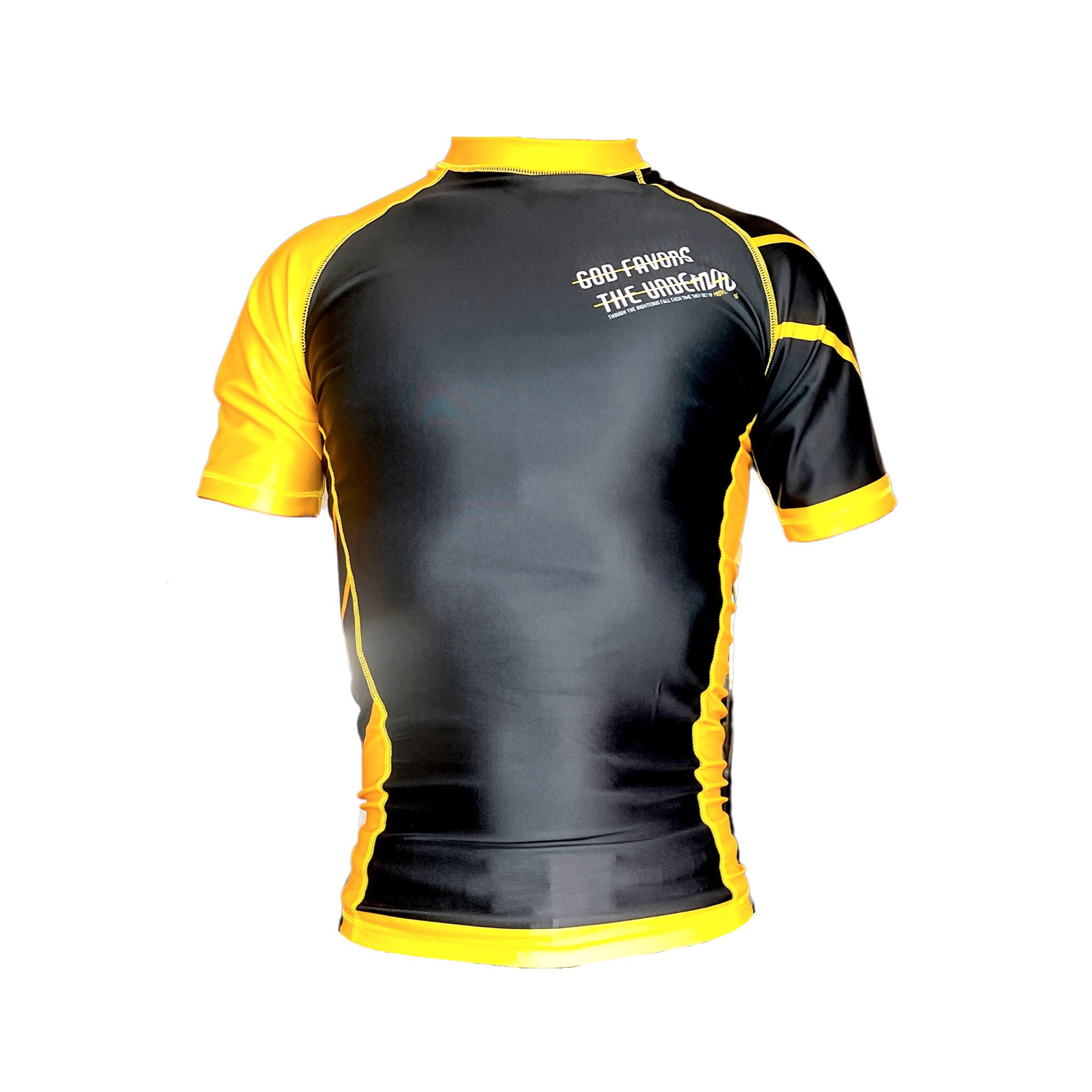 • High-Quality Material: Made from a blend of 85% polyester and 15% spandex, the “Underdog” rashguard offers exceptional flexibility and breathability, ensuring comfort during the most demanding training sessions.
