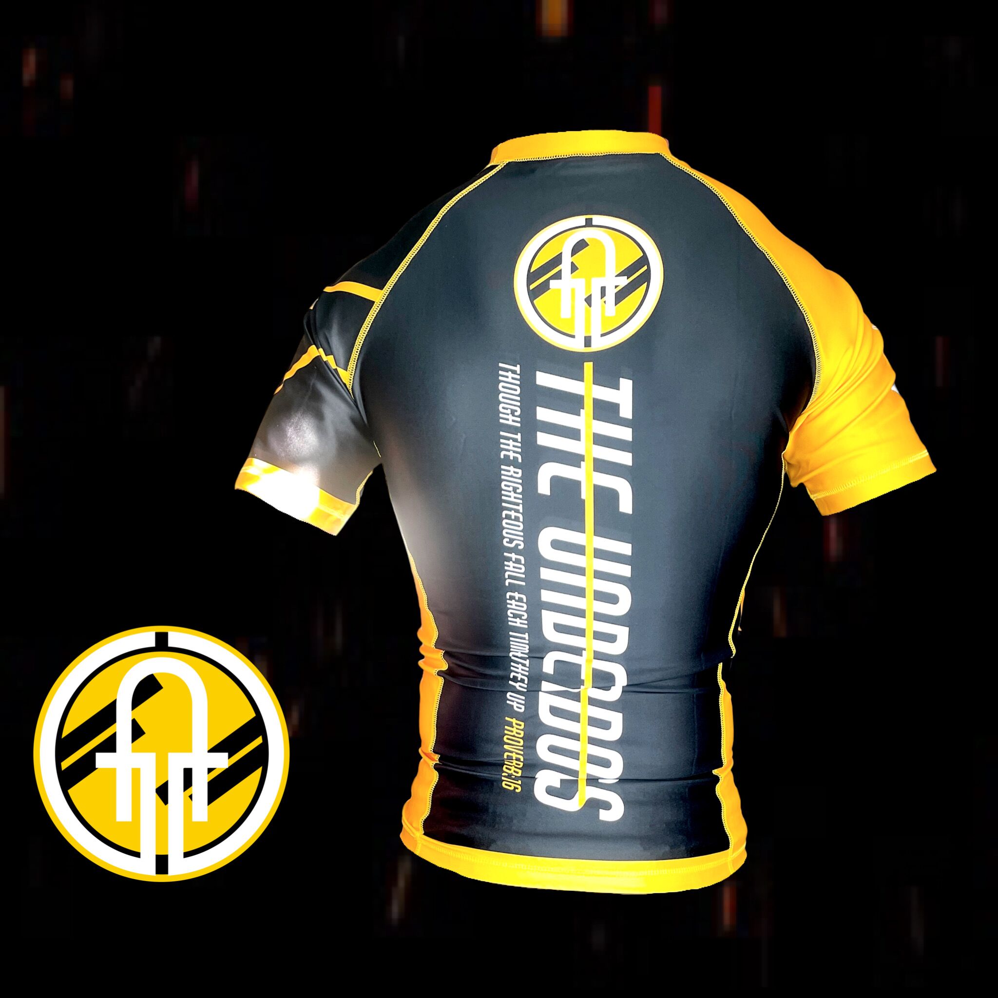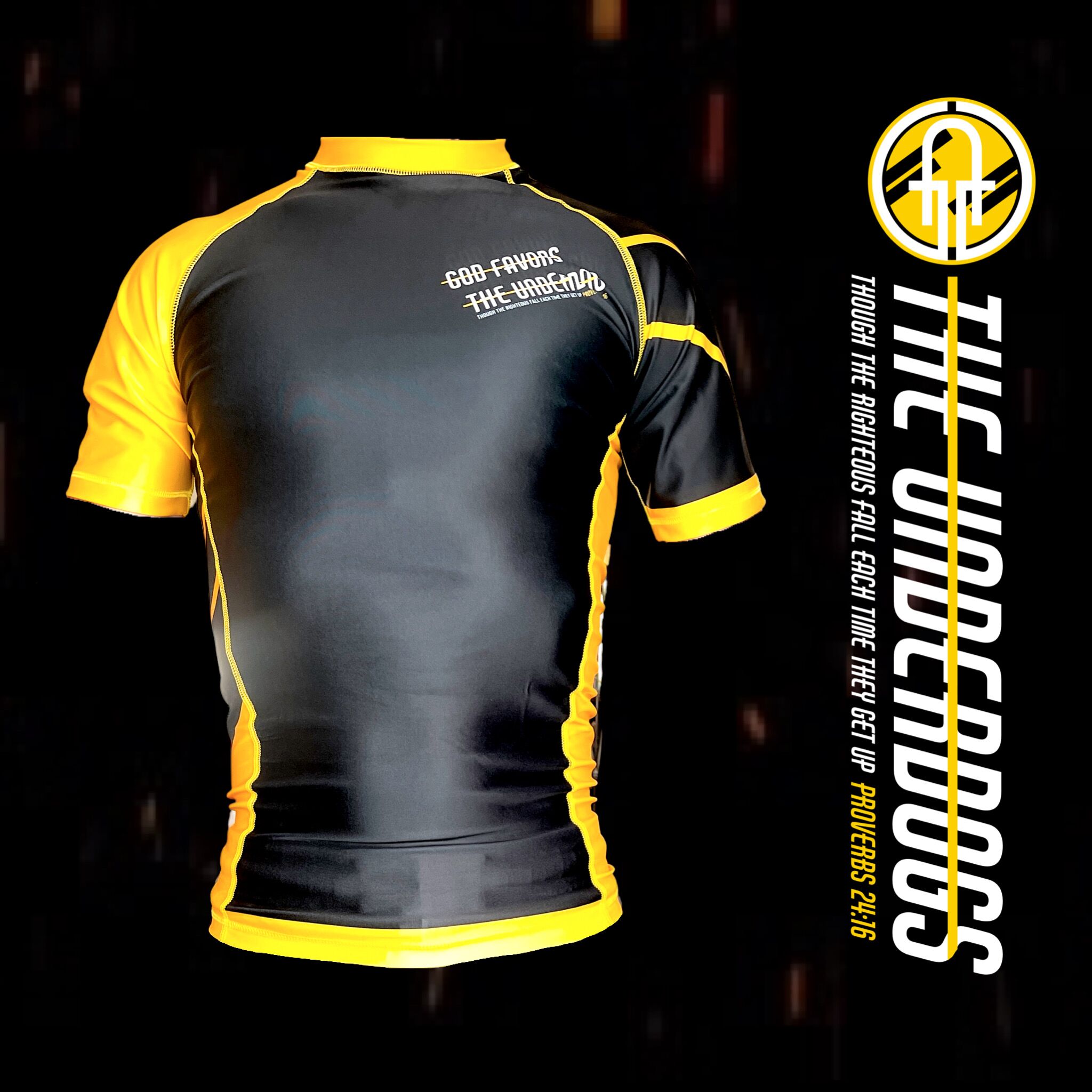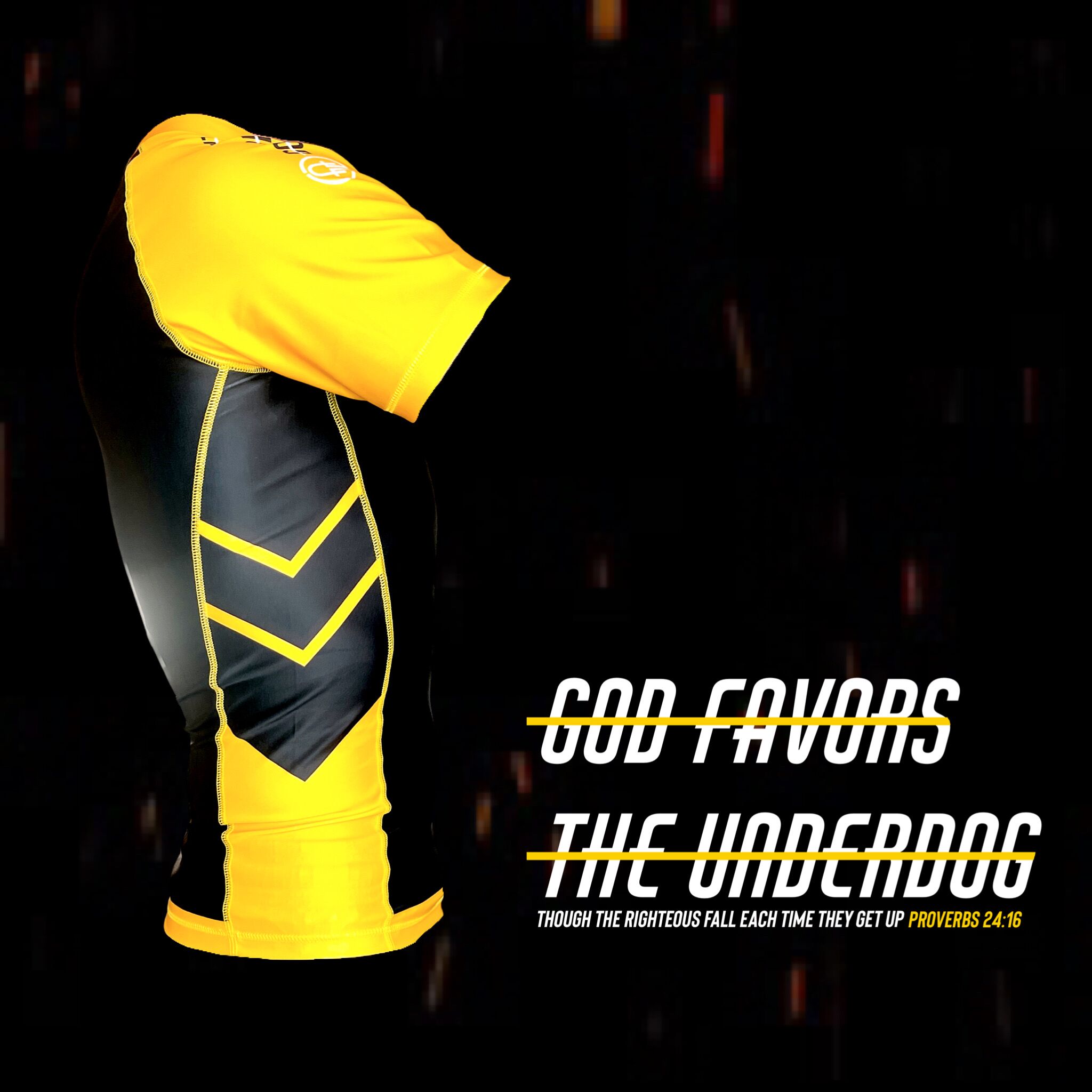 Rise above challenges with our “Underdog” Jiujitsu Rashguard, inspired by Proverbs 24:16. This rashguard celebrates resilience and determination, reminding you that the godly may fall seven times but they will get up again.